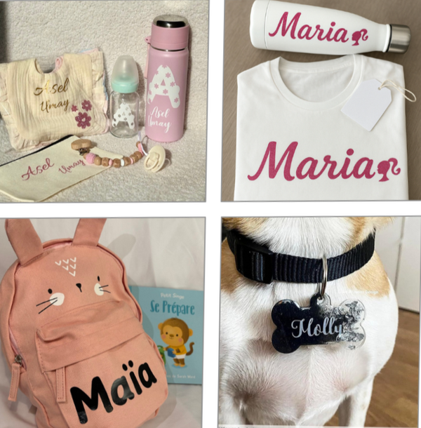 Cadeaux personnalisésPour toutes les occasions : anniversaires, naissances, mariages, fêtes, baptêmes, fin d’année scolaire, etc.Mugs, tote bags, trousses, porte-clés, cadres, décorations, et bien plus encore.